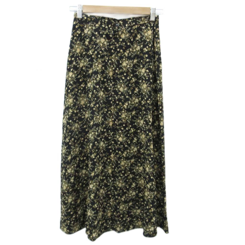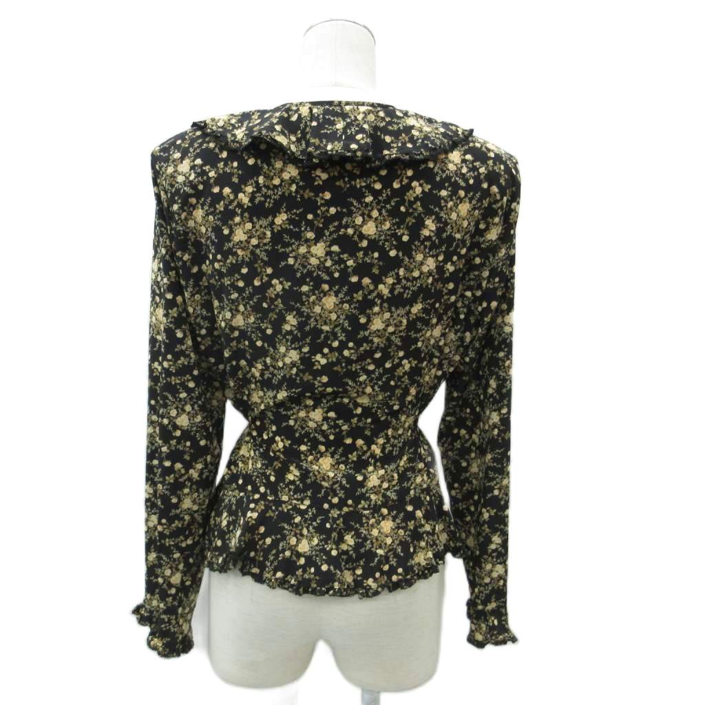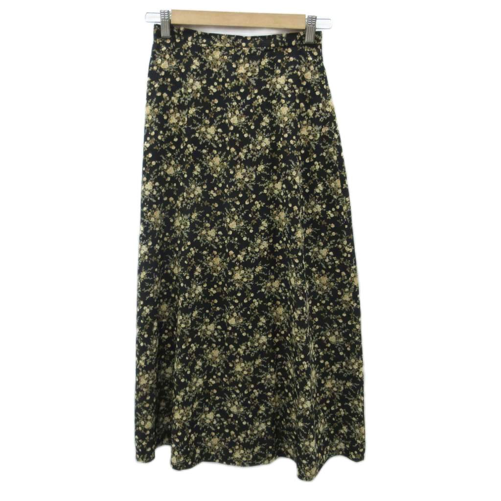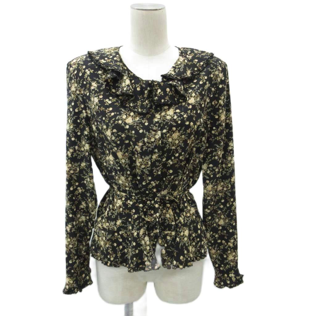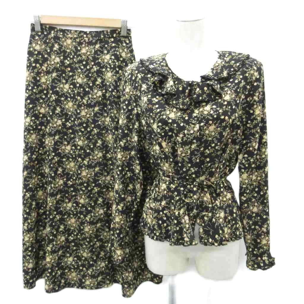 ケティ KETTY セットアップ 上下 ブラウス シャツ 長袖 フレアスカート ロング丈 マキシ丈 M 黒 小花柄 フリル /SY70 ■GY58 レディース