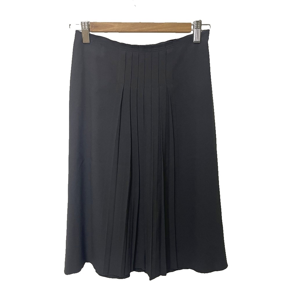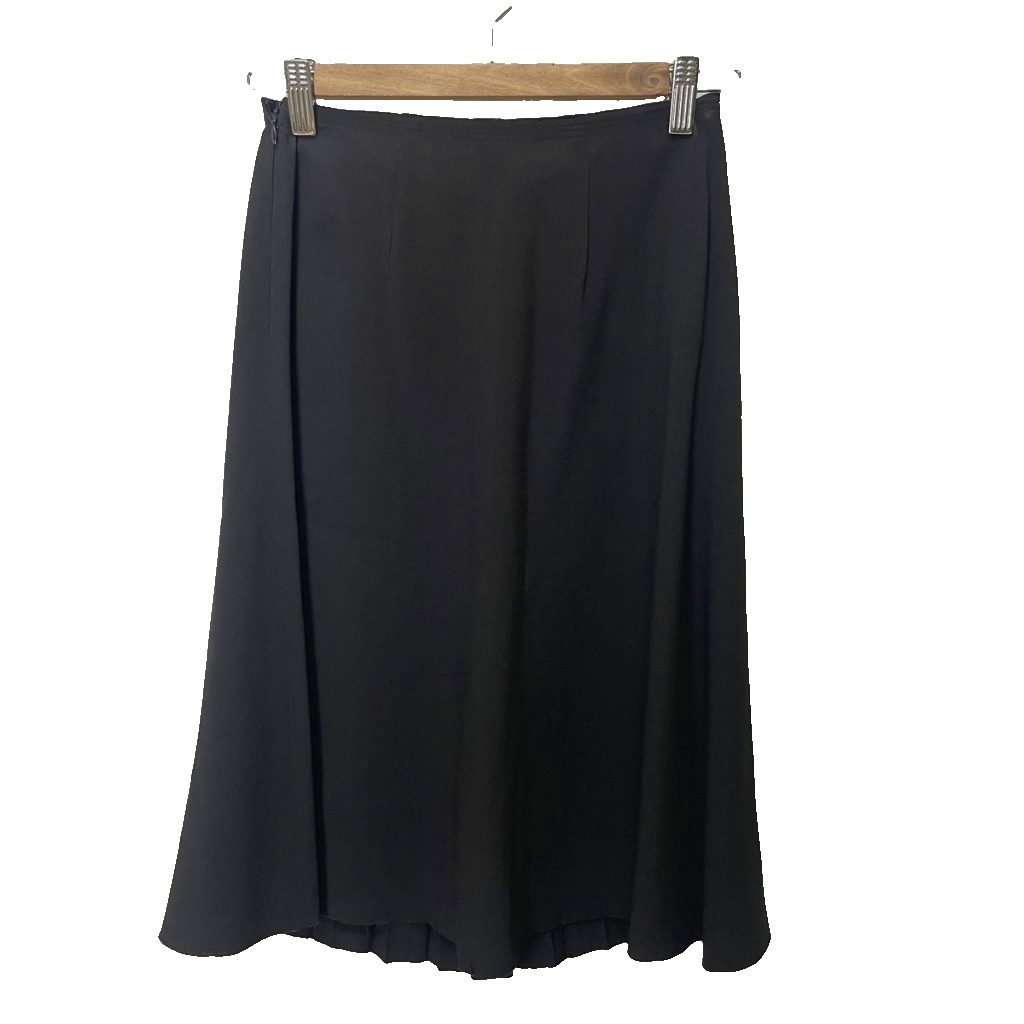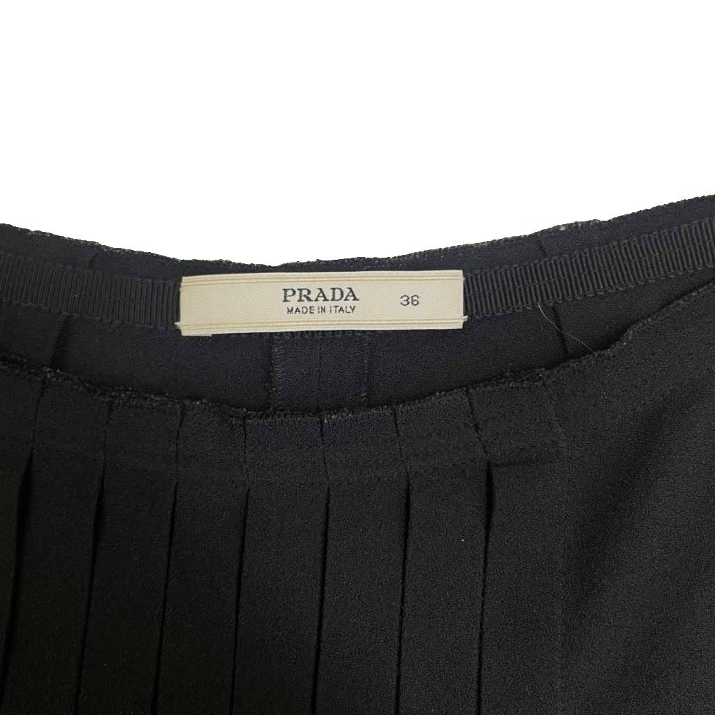 プラダ PRADA フロントプリーツ フレアスカート ひざ丈 36 黒 ブラック レディース