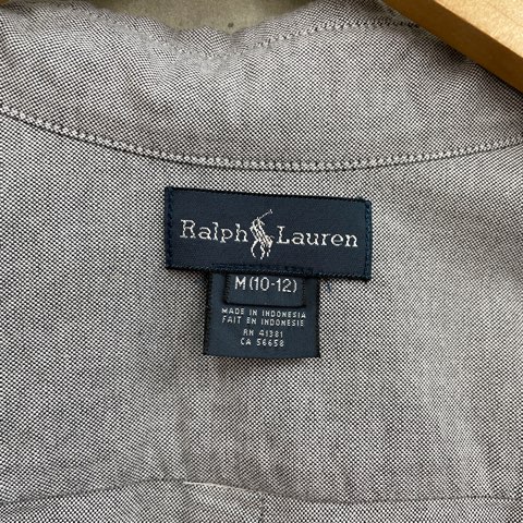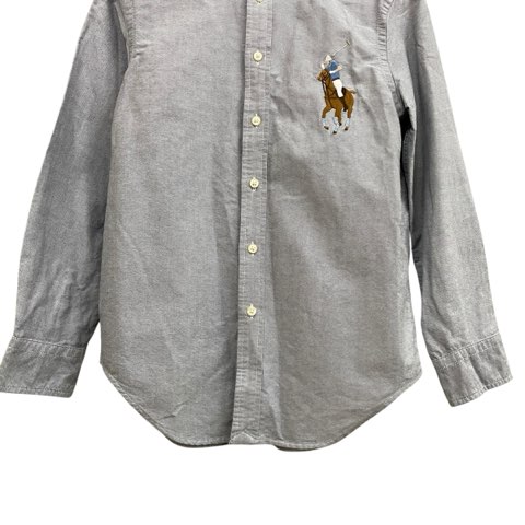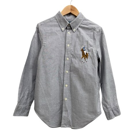 ラルフローレン RALPH LAUREN ボタンダウンシャツ 長袖 ロゴマーク刺繍 ジュニア ネイビー系 グレー系 サイズM キッズ