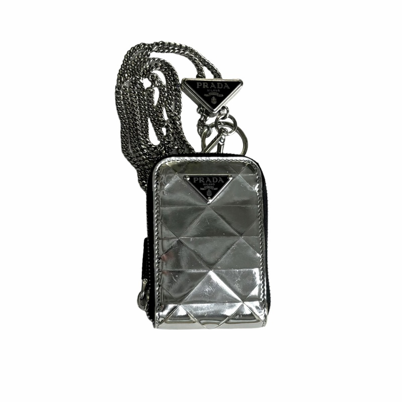 プラダ PRADA ブラッシュドレザーポーチ ショルダーバッグ トライアングルロゴ シルバー 2TL441 メンズ