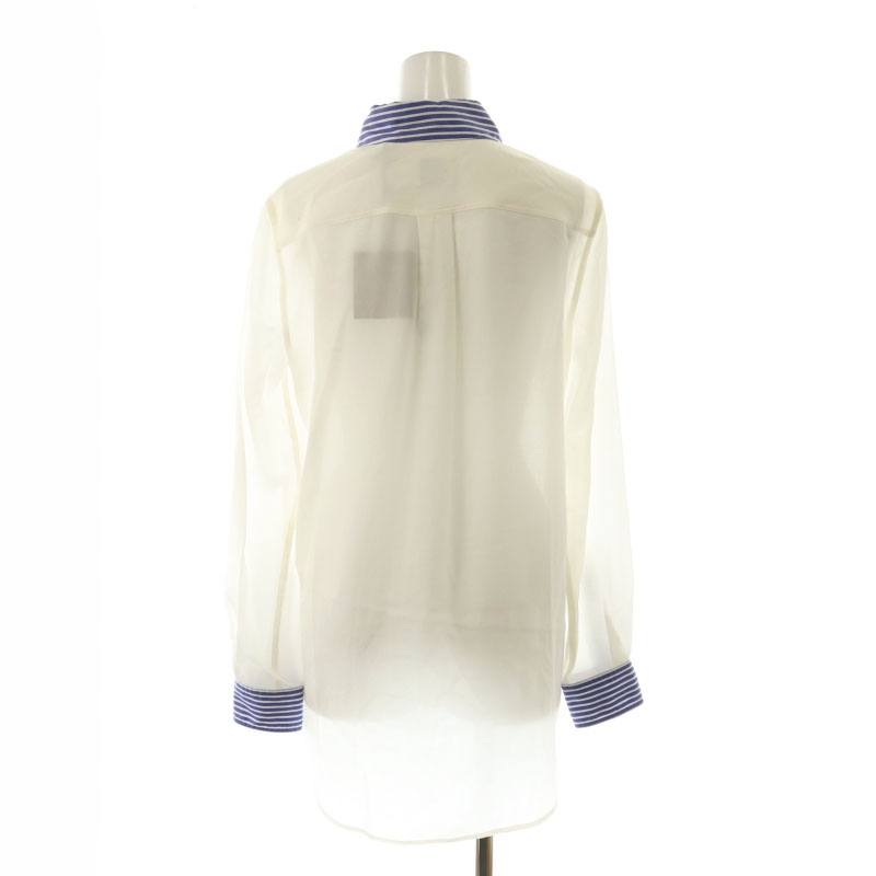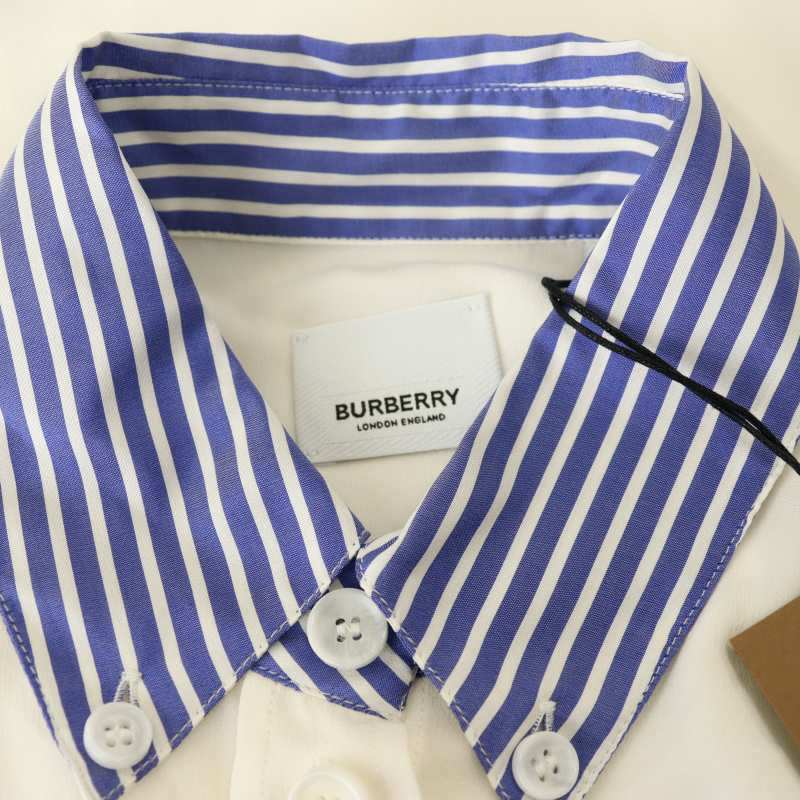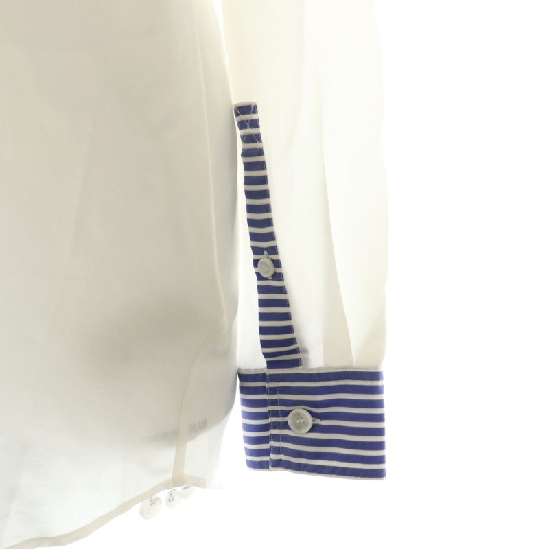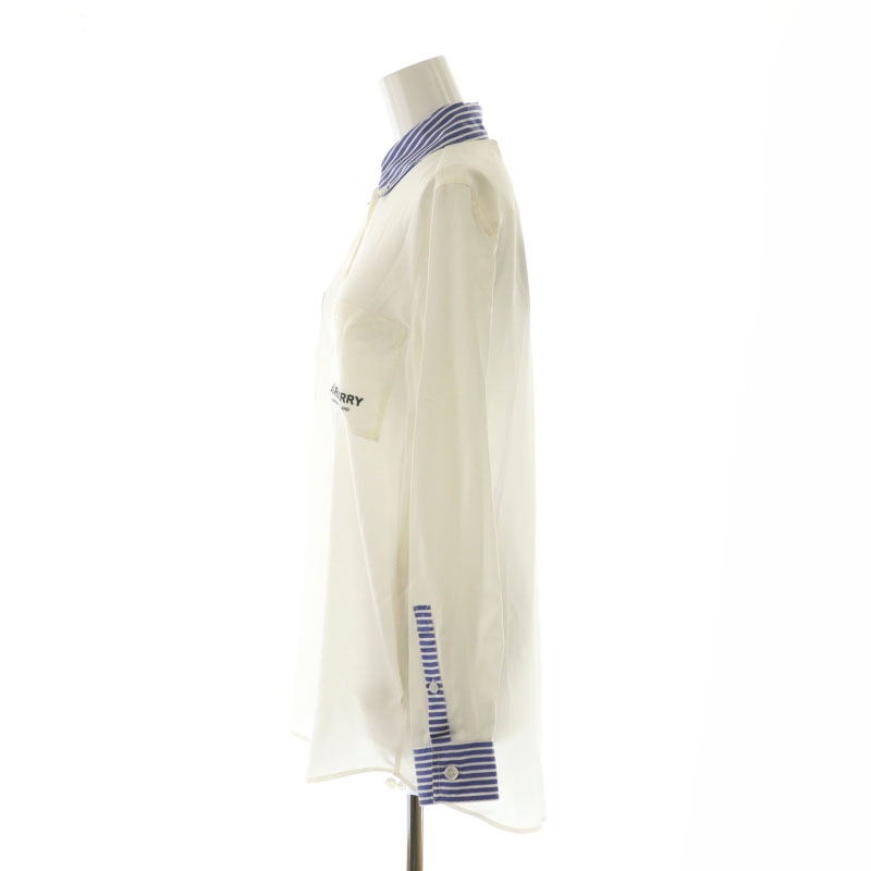 バーバリー BURBERRY シルク ポケットロゴ シャツ ボタンダウン 長袖 US2 ナチュラルホワイト 青 ブルー 8071331 /MI ■OS レディース