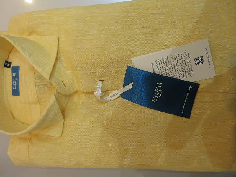 未使用品 FEFE 麻シャツ 長袖イエロー メンズ