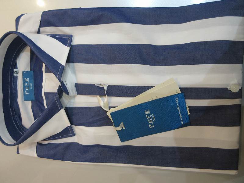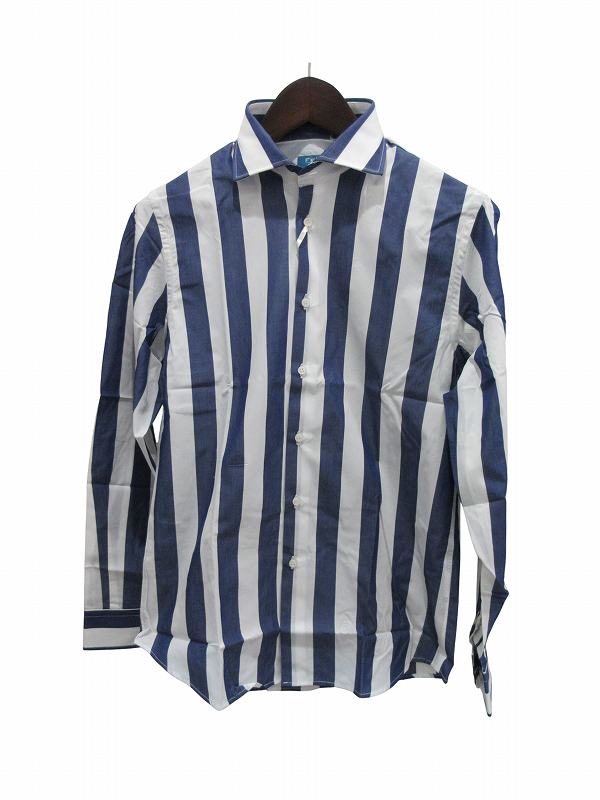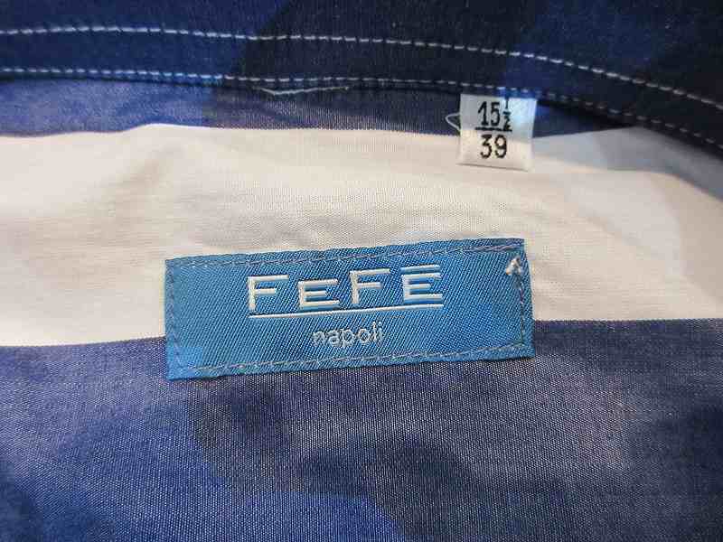 未使用品 FEFE 綿シャツ 長袖ブルーストライプ メンズ