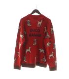 HAWAII カーディガン ウール コットン ニット Vネック アニマル 総柄 赤 レッド ■GY18 /MQ