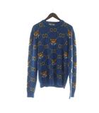 EXO KAIコラボ ニット セーター 長袖 ロゴ GGジャガード 総柄 くま ベア XS 青 ブルー 660621 XKBW8 ■GY18 /MQ