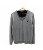 ニット カットソー 長袖 Vネック ロゴ刺繍 ウール混 3 グレー /SY28 ■GY53