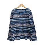 長袖Vネックニットシャツ 幾何学柄 刺繍 コットン ブルー系 サイズ3 L相当