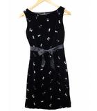 花柄 刺繍 ベルベット ノースリーブ ワンピース 38(M) BLACK(ブラック)