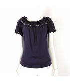 カットソー ブラウス プルオーバー 花柄 フリル 半袖 L 40 紫 ラベンダー ベージュ