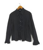 ブラウス シャツ フリル シルク 落ち感 とろみ フレアスリーブ 長袖 M 黒 ブラック