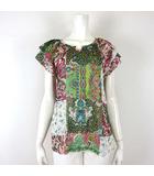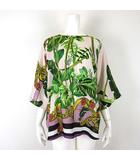 インペリアル IMPERIAL チュニック リーフ柄 バロック柄 総柄 配色 ラウンドヘム シアー 落ち感 とろみ フレア袖 7分袖 XS マルチカラー
