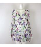 チュニック 花柄 楊柳 シアー シフォン 切替 Vネック ティアード フリル メロウ シャーリング キャンディースリーブ 長袖 L オフ白 マルチカラー