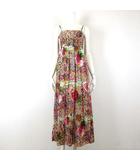 キャミワンピース フレア 花柄 総柄 シャーリング 切替 シアー シフォン ロング マキシ コットン M ベージュ マルチカラー