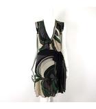チュニック ワンピース 総柄 切替 カシュクール リボン シアー 落ち感 とろみ メロウ ノースリーブ M マルチカラー