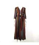シャツワンピース マルチストライプ 切替 Vネック ビッグボタン 比翼ボタン ロング 7分袖 M マルチカラー