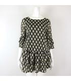 jai guru deva チュニック アーガイル柄 チェック柄 シアー シフォン ギャザー ティアード ラウンドネック フリル袖 7分袖 M オリーブ オフ白 ダークグレー