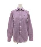ストライプシャツ ブラウス 長袖 2 紫 パープル 白 ホワイト ロゴ ポニー刺繍 /GV ■GY18
