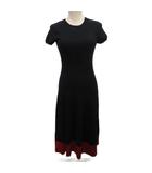 美品 ニットワンピース 半袖 マキシ ロング ウール M 黒 ブラック 赤 レッド SO-RL-KA-2002 ■MET2