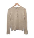 ニット セーター ヘンリーネック ローゲージ 長袖 麻 リネン混 絹 シルク混 L ベージュ ■MET2
