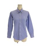 SLIM FIT シャツ ブラウス 長袖 ボタンダウン ロゴ刺繍 コットン 青系 ブルー系 7 ■FF