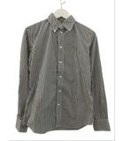 シャツ 長袖 ボタンダウン ストライプ ホワイト ブラック 綿 コットン スリムフィット 11号 トップス