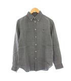 CLASSIC FIT ボタンダウンシャツ ブラウス 長袖 レギュラーカラー ロゴ 刺繍 ワンポイント 麻 リネン M グレー /BB