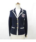 ジャケット ニット テーラージャケット バイカラー シングル 金ボタン 刺繍 紺 白 ネイビー ホワイト M