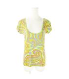 カットソー Uネック デコルテ 半袖 ストレッチ ペイズリー柄 総柄 L 緑 グリーン /AO19 ■GY43