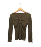 国内正規品 リブ Tシャツ カットソー レースアップネック 長袖 無地 コットン 綿 M オリーブ /FT47
