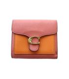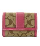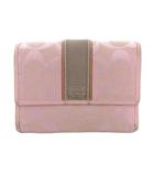 財布 三つ折り キャンバス レザー Wホック シグネチャー 総柄 ロゴ 茶色 ブラウン ピンク /XZ ■GY17