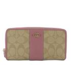 長財布 ラウンドジップ シグネチャー キャンバス 茶 ブラウン ピンク /JS