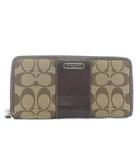 長財布 キャンバス レザー ラウンドファスナー シグネチャー ロゴ 茶色 ブラウン /XZ ■GY17