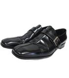 スクエアトゥ シングルモンク ビジネス レザーシューズ ドレスシューズ 革靴 黒 ブラック 9 1/2 IBO84