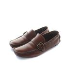 ローファー 革靴 スクエアトゥ ロゴ ベルト レザー 6.5 25.5cm 茶 ブラウン ■GY19 /MQ ■OH
