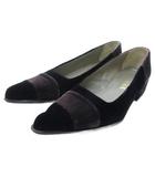 ベルベット パンプス ポインテッドトゥ ローヒール バイカラー 茶 ブラウン 約23cm IBO79 0913