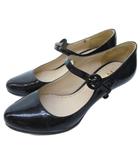 エナメル パンプス ラウンドトゥ ルイヒール 黒 ブラック 約22.5cm IBO79 0912