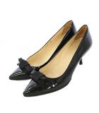 パンプス ポインテッドトゥ リボン エナメル 35 黒 ブラック /AN3