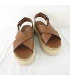 フラットフォームサンダル エスパドリーユ レザー 茶 35 *A129