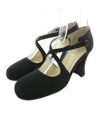 パンプス ナイロン ラウンドトゥ チャンキーヒール ストラップ 36 23cm 黒 ブラック /XZ ■GY19