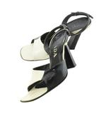 ストラップサンダル ハイヒール レザー 革 配色 バイカラー モノ 36 23.0cm 黒 ブラック /CK20 ■GY18