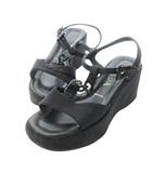 ストラップサンダル ウェッジソール ファブリック レザー 革 ロゴ刻印 35.5 22.5cm 黒 ブラック /CK20 ■GY18