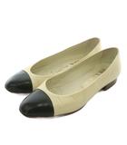 パンプス レザー ラウンドトゥ ローヒール 37 24cm アイボリー 黒 ブラック /XZ ■GY11