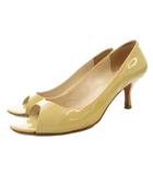 パンプス ヒール エナメル オープントゥ 36.5 黄 イエロー /GV ■GY03 ☆AA★
