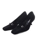 パンプス ハイヒール スクエアトゥ ベルト スエード 34.5 ブラック /YO20 ■SH
