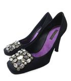 ビジュー スクエアトゥ パンプス ハイヒール 黒 ブラック 36 約23cm IBO81 1012