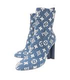 シルエットライン モノグラム デニム アンクル ブーツ ショート ハイヒール イタリア製 39 25cm 青 ブルー ☆AA★