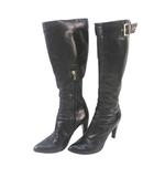 ロングブーツ ベルトデザイン ゴールド金具 ステッチ 38.5 ブラック 黒系 レザー イタリア製 11A0071