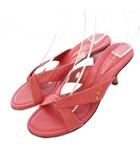サンダル ラウンドトゥ ローヒール レザー クロス モノグラム 装飾 35.5 ピンク /BB