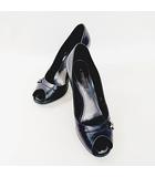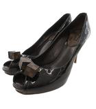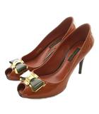 パンプス エナメル オープントゥ ハイヒール リボン LVロゴ ゴールド金具 34.5 22cm 茶色 ブラウン /XZ ■GY19