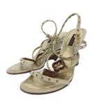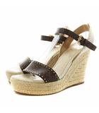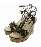 サンダル キャンバス レザー オープントゥ ウェッジソール モノグラム ストラップ 34.5 22cm 茶色 ブラウン /XZ ■GY17